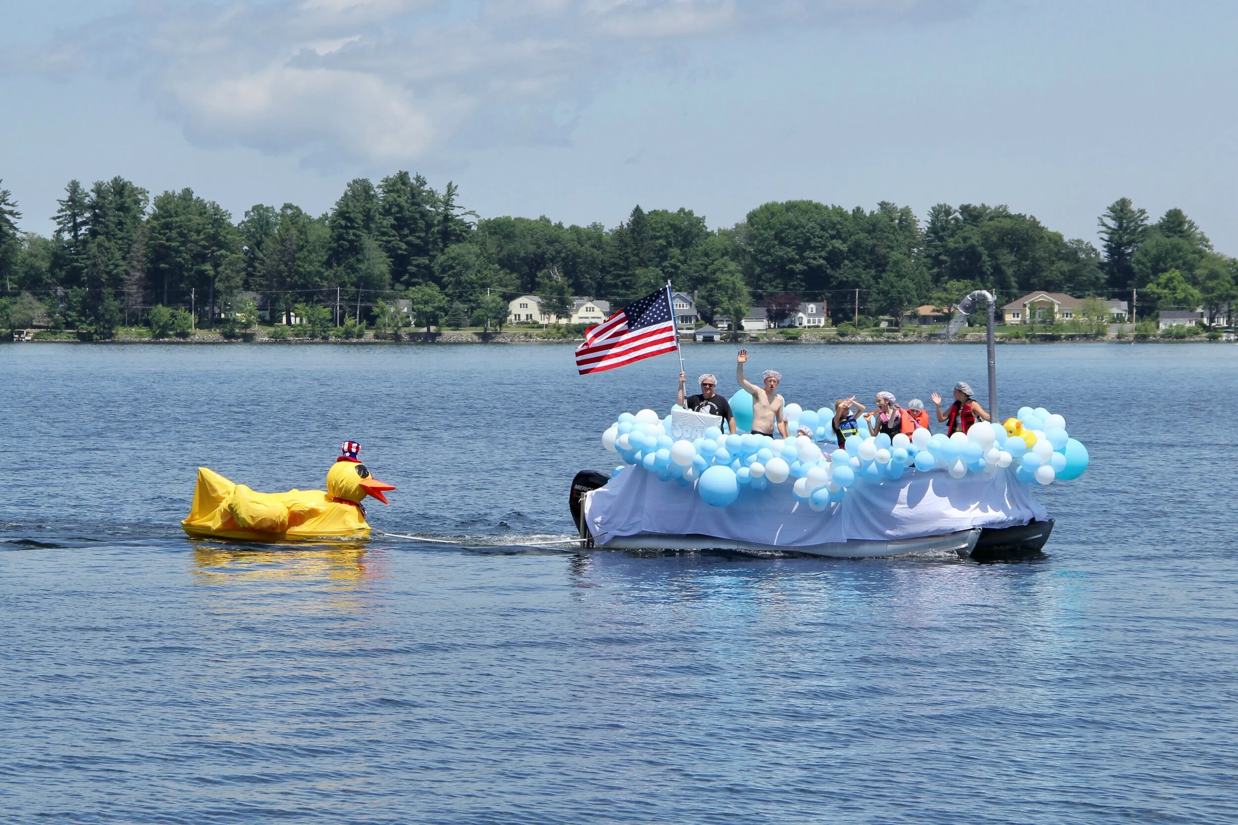 The Fourth of July was a beautiful summer day and the Boat Parade was grand! More than twenty decorated boats participated. The first place winner was the newly re-created steamboat Canobie Queen, by the “McKackerson” families.